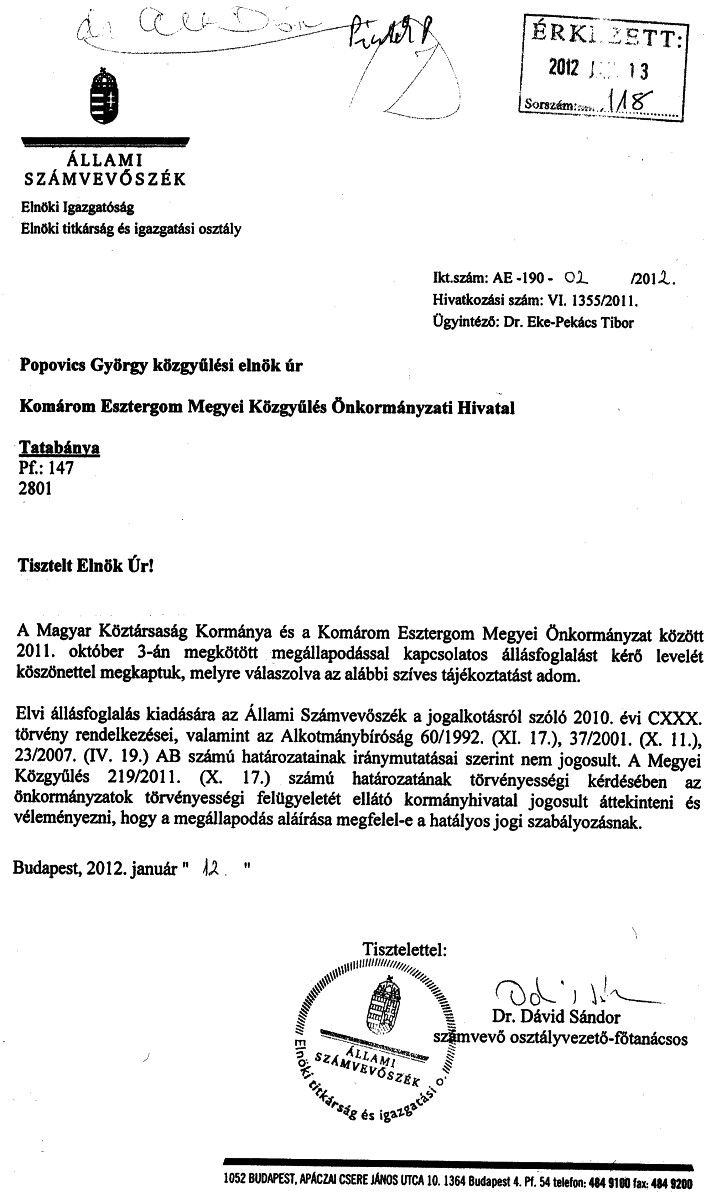a Komárom-Esztergom Megyei Közgyűlést 2012. január 26-án (csütörtök) 9:00 órára összehívom, amelyre ezúton tisztelettel meghívom.