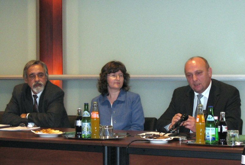 A fotón balról jobbra: Polgár Judit, Lázár Tibor – tervezők, Pengő Julianna – megyei főépítész, Agócs István – elnök.