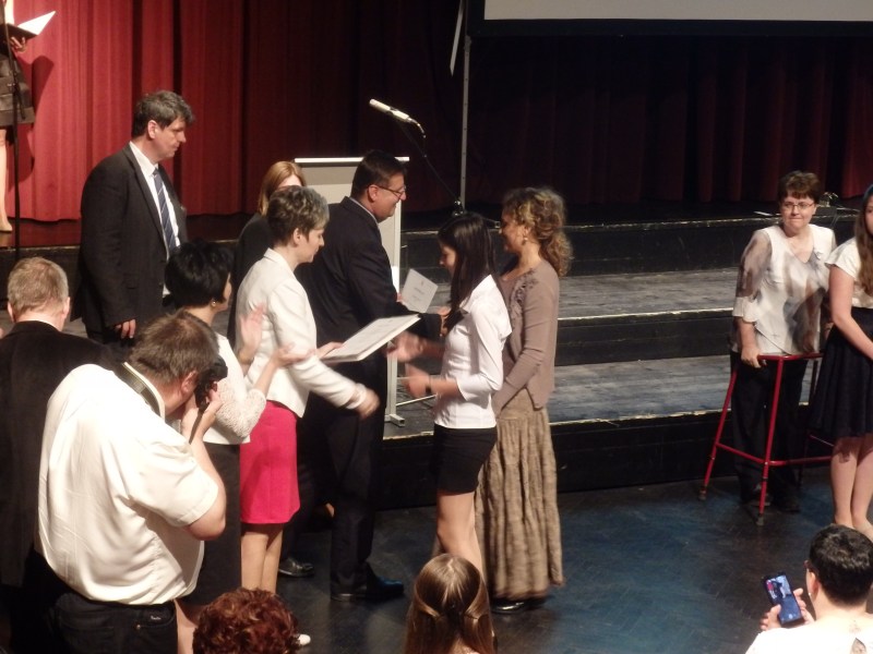A Győri Pedagógiai Oktatási Központ által szervezett rendezvényre meghívást kaptak azok a diákok és tanáraik, akik valamely tanulmányi versenyen kimagasló eredményt értek el. Az ünnepségen elsőként Némethné Fülöp Terézia, az Oktatási Hivatal Győri Pedagógiai Oktatási Központjának főosztályvezetője köszöntötte a megjelenteket. Beszédében a nagy elődöket sorakoztatta fel, Nobel-díjasokat, kimagasló eredményeket elért tudósokat állított példaként, akik szintén hasonlóképpen indultak el pályájukon, mint a jelenlévő diákok. Ezt követően Popovics György, a megyei közgyűlés elnöke nyitotta meg a díjátadót. Beszédében a tehetségről szólt, mely önmagában kevés, ha nem párosul szorgalommal és alázattal. Beszélt arról, hogy a széksorokban helyet foglaló diákok példaképek. Mert a jó példa is ragadós, és az ő eredményük és emberi tartásuk másokat is elindíthat azon az úton, melyet sikernek és teljesítménynek neveznek. A Komárom-Esztergom Megyei Önkormányzat hagyományteremtő szándékkal díjat hozott létre, mellyel a megye legkiválóbb felkészítő pedagógusait kívánja elismerni. Az első alkalommal Popovics György Bacsó Ágnesnek, a Tatabányai Éltes Mátyás Egységes Gyógypedagógiai Módszertani Intézmény, Általános Iskola és Szakiskola intézményvezetőjének, mesterpedagógusnak, szaktanácsadónak adta át a díjat. Vereckei Judit, a KLIK Tatabányai Tankerületének igazgatója köszöntőjében aarról szólt, hogy sokan megelégszenek a középszerű teljesítménnyel. Az itt helyet foglaló diákok és tanárok azonban ennél sokkal többre vállakoztak, és céljukat sok munkával el is érték. Ezt követően került sor a tanulmányi versenyeken részt vett diákok és felkészítő tanáraik elismerésére. A díjakat Némethné Fülöp Terézia, Vereckei Judit a KLIK tatabányai Tankerületének igazgatója és Popovics György adták át. A rendezvényt a Tatabányai Váci Mihály Általános Iskola diákjainak kórusa Citrovszky Csenge harmonika játéka tette még ünnepélyesebbé.